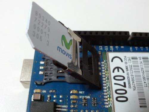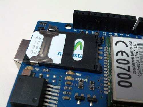 Once the SIM is inserted, mount it on top of an Arduino board.