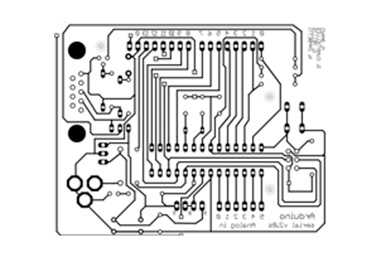 The initial design of the single-sided board (labeled version 2 because it was derived from v. 2 of the serial board). Requires six bridges. Has a 1K resistor (but no LED) on pin 13. The ICSP header location is not compatible with other boards.