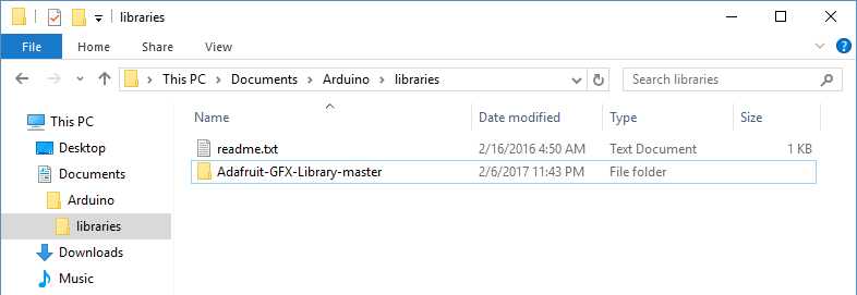 Libraries are often distributed as a ZIP file or folder. The name of the folder is the name of the library. Inside the folder will be a .cpp file, a .h file and often a keywords.txt file, examples folder, and other files required by the library. Starting with version 1.0.5, you can install 3rd party libraries in the IDE. Do not unzip the downloaded library, leave it as is.